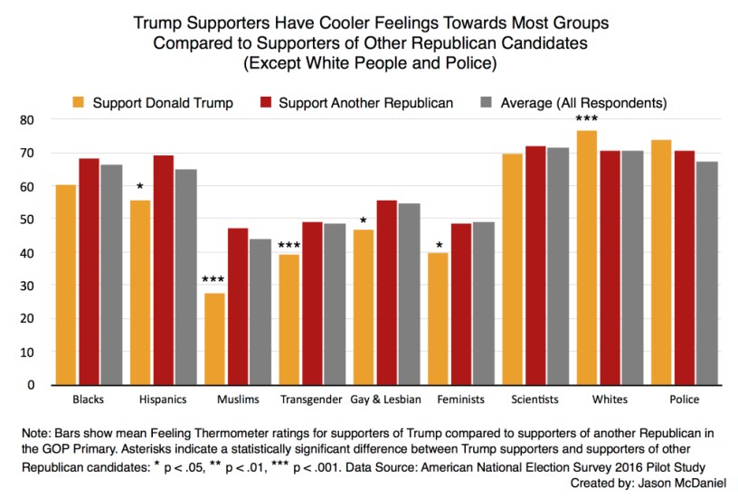 Trump Supporters Have Cooler Feelings Towards Many Groups, Compared to Supporters of Other Candidates