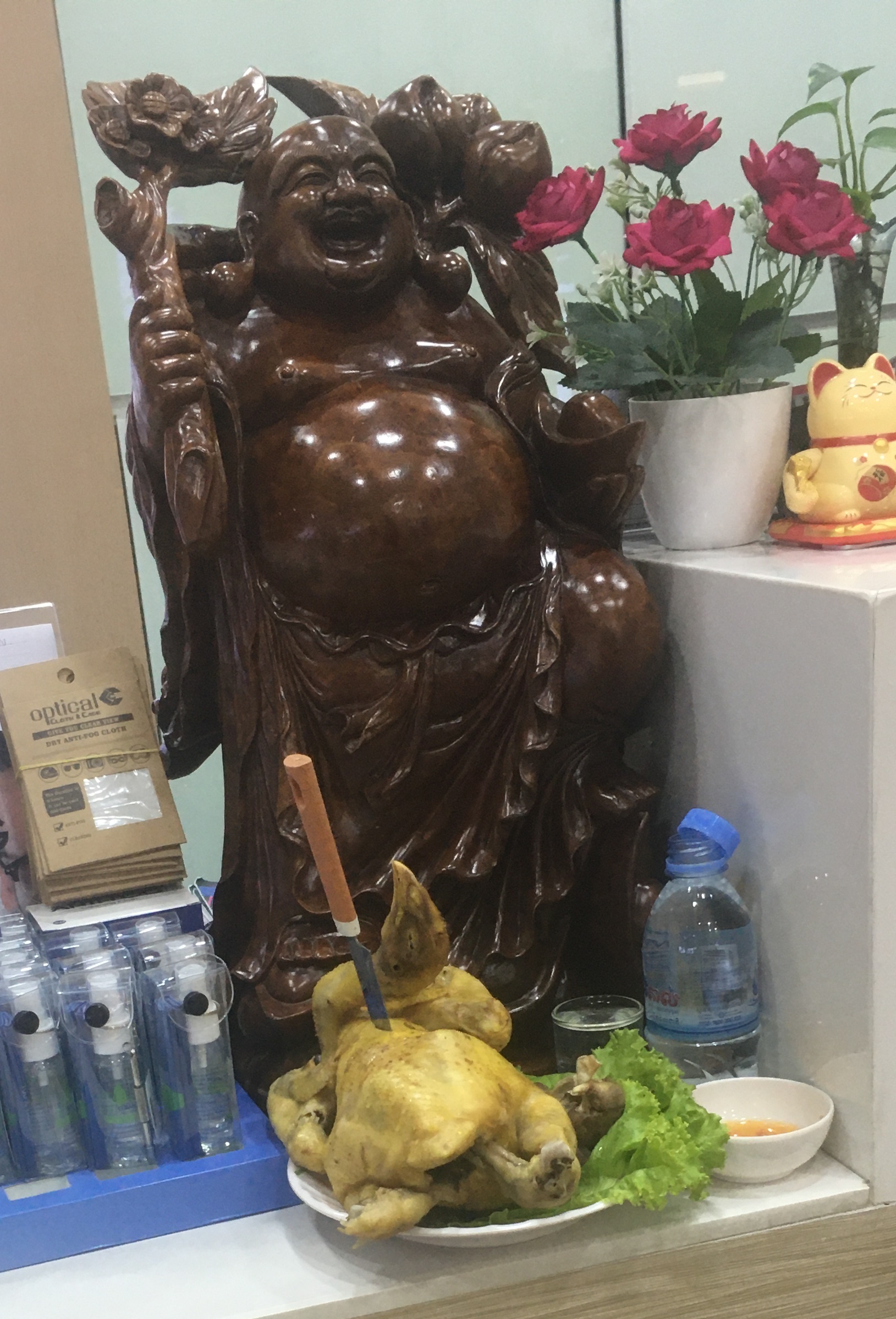 - FEEDING THE SPIRIT: Whilst shopping for glasses, we found the altar in shown in the feature photo. I know they are feeding the spirit of the store or an ancestor or both, but it sure looked like the way I feel about life recently. So, you know what they say, “Don’t bite the hand of god when you see it at work in your life, right?” Serendipity or synchronicity or whatever.