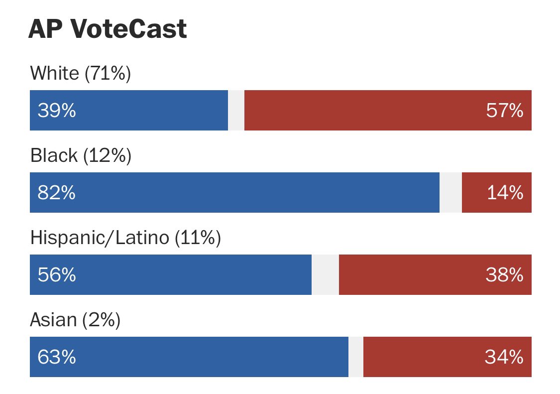 - ALL WOMEN: 59% voted Democratic, but that includes PoC. I’m still waiting to see the break down.