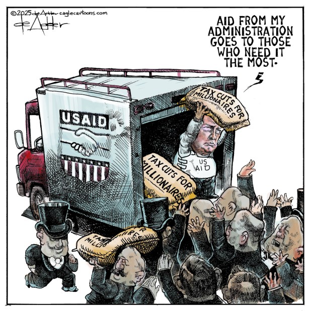 What we don’t see are the corporations that are buying up the housing stock and the small and mid-sized farms while consolidating industries. What we don’t see is how tariffs are not only paid for by poor and middle class people, but they are a transfer of wealth to the upper class. They are paying for the massive tax cut the Republicans made permanent.